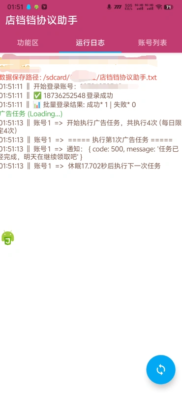 - 账号密码登陆,支持批量账号同时挂机,登陆后点开始运行即可(小白协议软件无脑操作)
